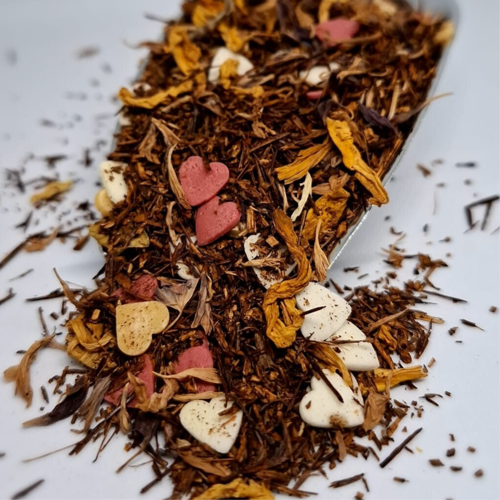 Beleef de heerlijke smaak van deze rooibos met vanille-kaneel bloemen smaak. Deze unieke blend combineert de rijke smaak van rooibos met suikerharten, natuurlijke aroma en rozenblaadje, suikerhartjes korenbloemblaadjes. Geniet van de zoete vanille-kaneel smaak die deze thee een bijzondere en warme ervaring geeft.